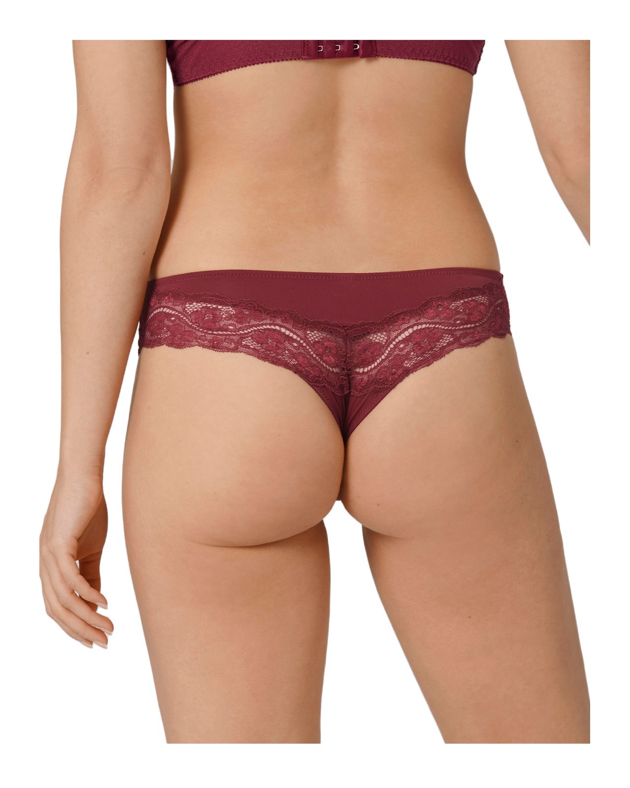 Brazilian String με μικρή κάλυψη, από microfiber και δαντέλα. Floral επίπεδη δαντέλα στο πίσω μέρος και βαμβακερό καβάλο. Σύνθεση : 84% Πολυαμίδιο, 16% Ελαστάνη