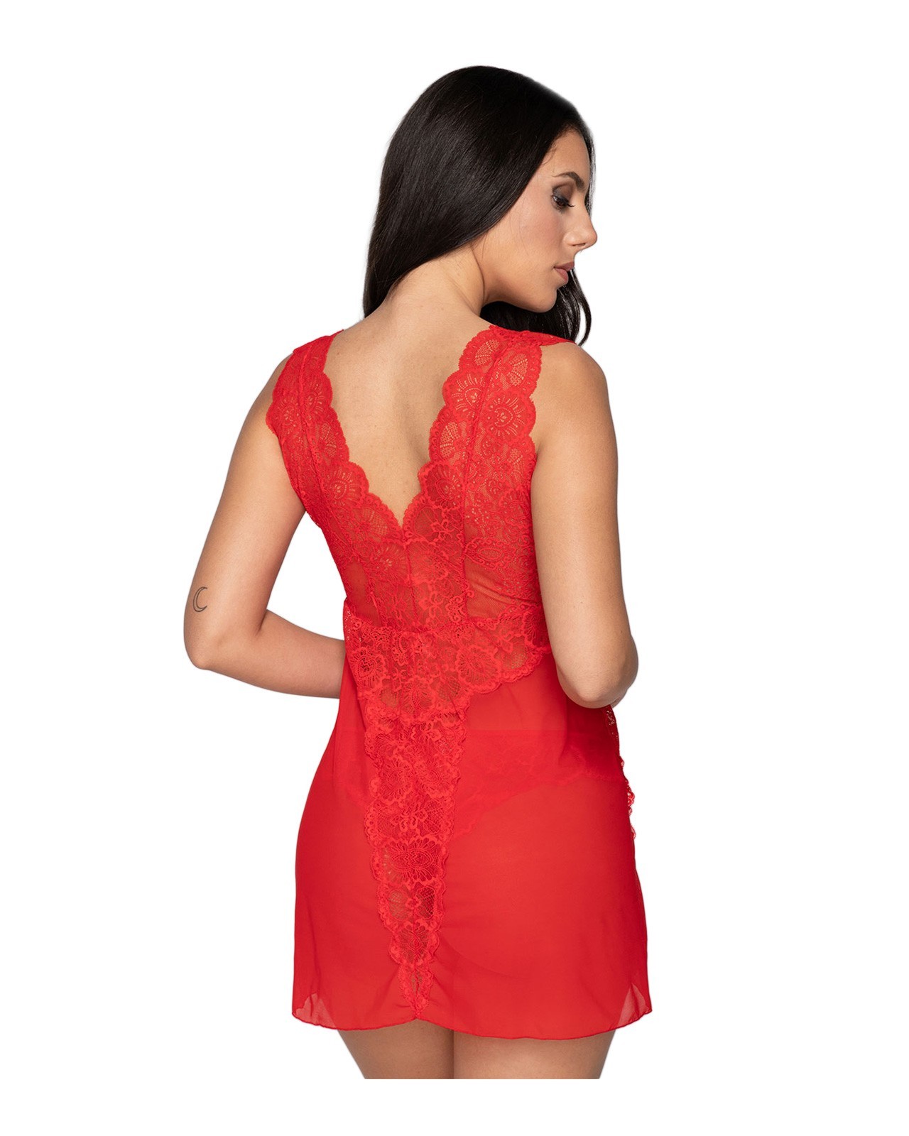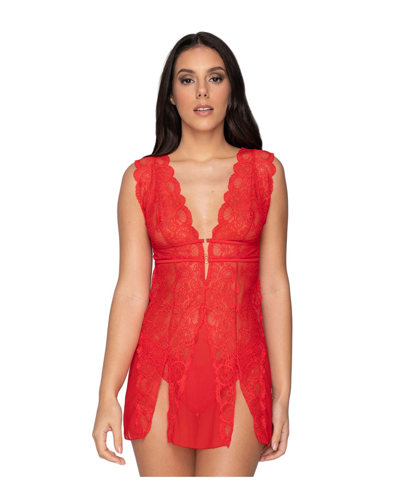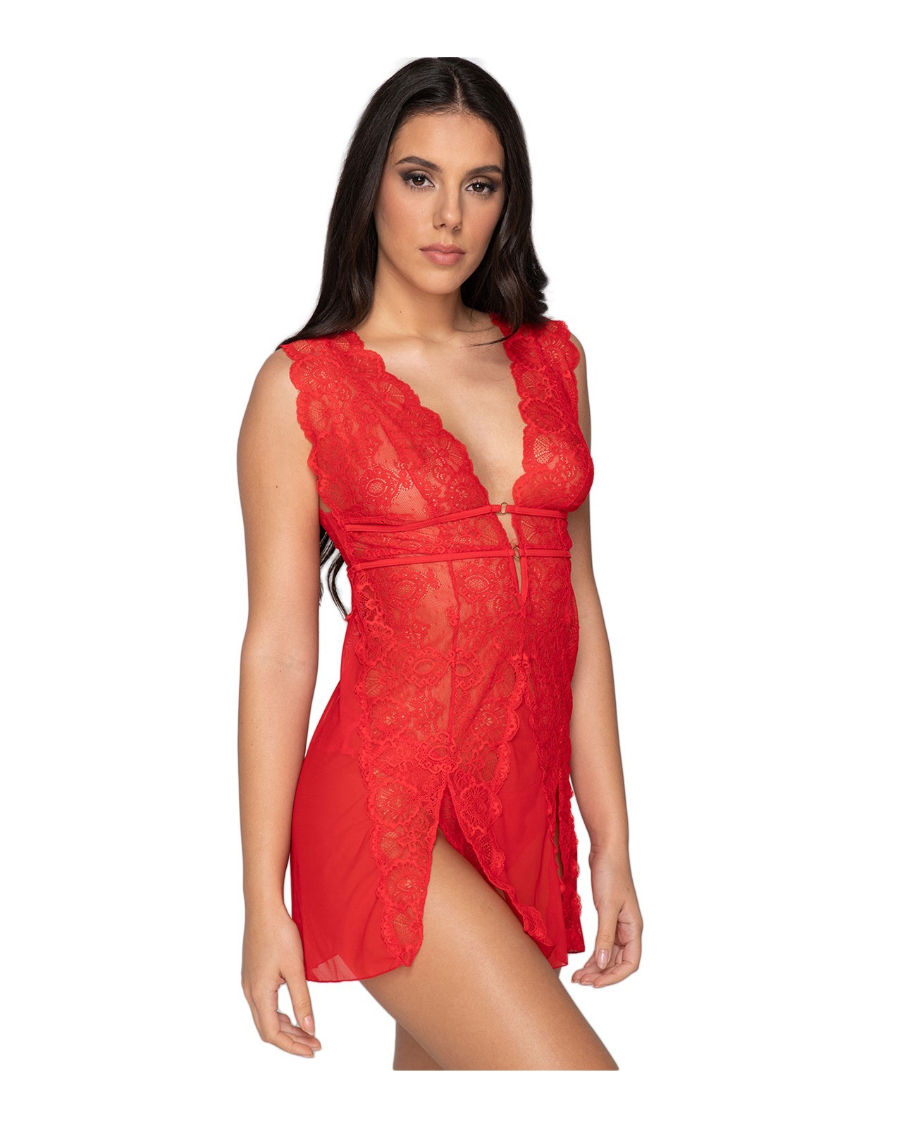 Κόκκινο babydoll της συλλογής Kiss.Από μαλακή δαντέλα με εντυπωσιακά σχέδια εμπνευσμένα από Ινδικά μοτίφ.Με βαθύ ντεκολτέ για αισθησιακές εμφανίσεις.Λεπτομέρειες από κορδόνια και χρυσά κρικάκια στο στήθος.Με ανοίγματα στο πλάι για μεγαλύτερη άνεση και πιο sexy διάθεση. Σύνθεση : 84% Πολυαμίδιο, 16% Ελαστάνη