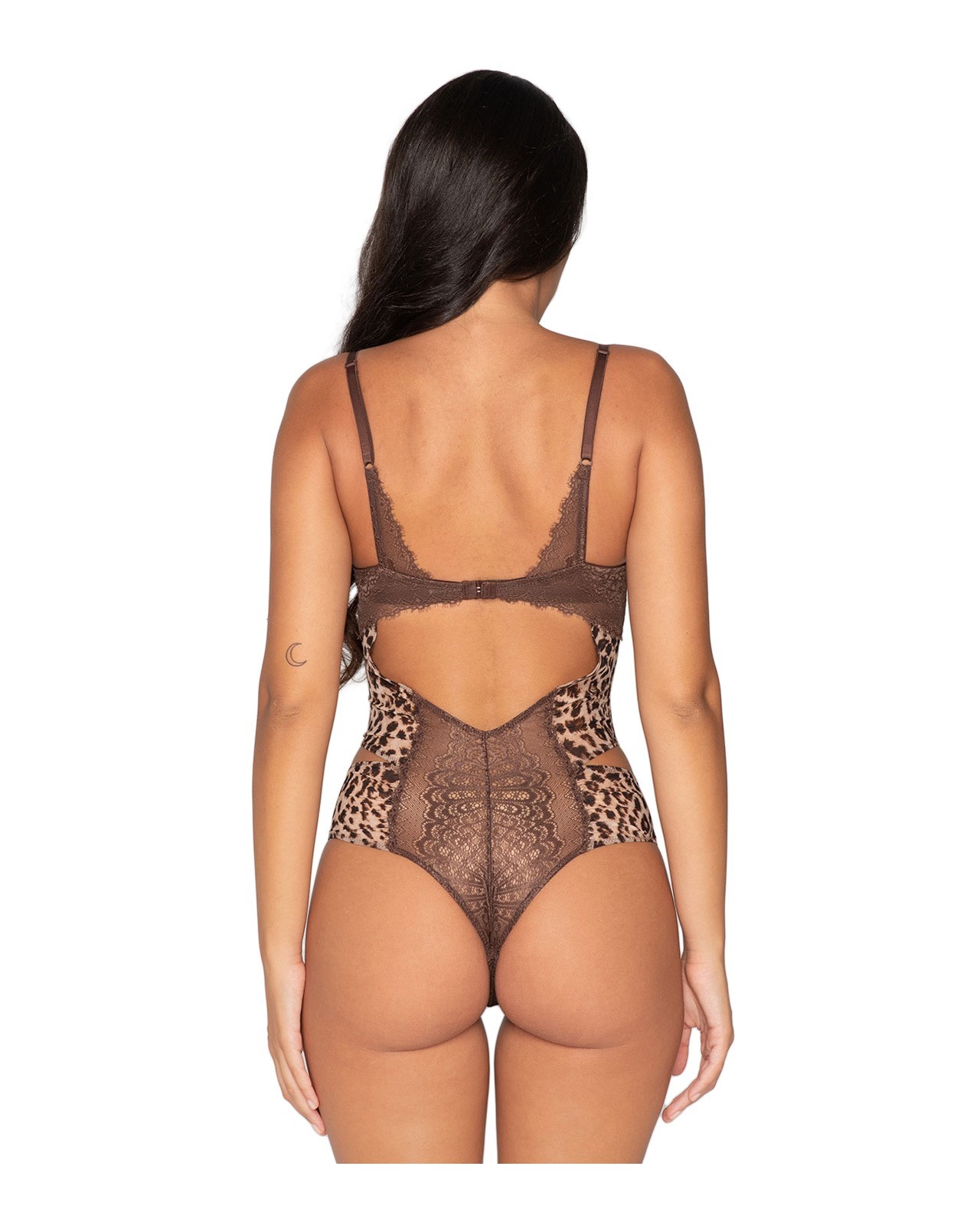 Animal print κορμάκι της συλλογής Leopard. Από μαλακό τούλι και σοκολατί ζακάρ δαντέλα για τέλεια εφαρμογή στο σώμα σου. Σου προσθέτει 2 μεγέθη και κάνει το ντεκολτέ σου πιο εντυπωσιακό από ποτέ. Με sting τελείωμα για ακαταμάχητες εμφανίσεις. Βαμβακερό ύφασμα στο σημείο της ευαίσθητης περιοχής.Με ρυθμιζόμενες τιράντες, κούμπωμα με κόπιτσα στην πλάτη και στον καβάλο. Σύνθεση :80% Πολυαμίδιο, 20% Ελαστάνη