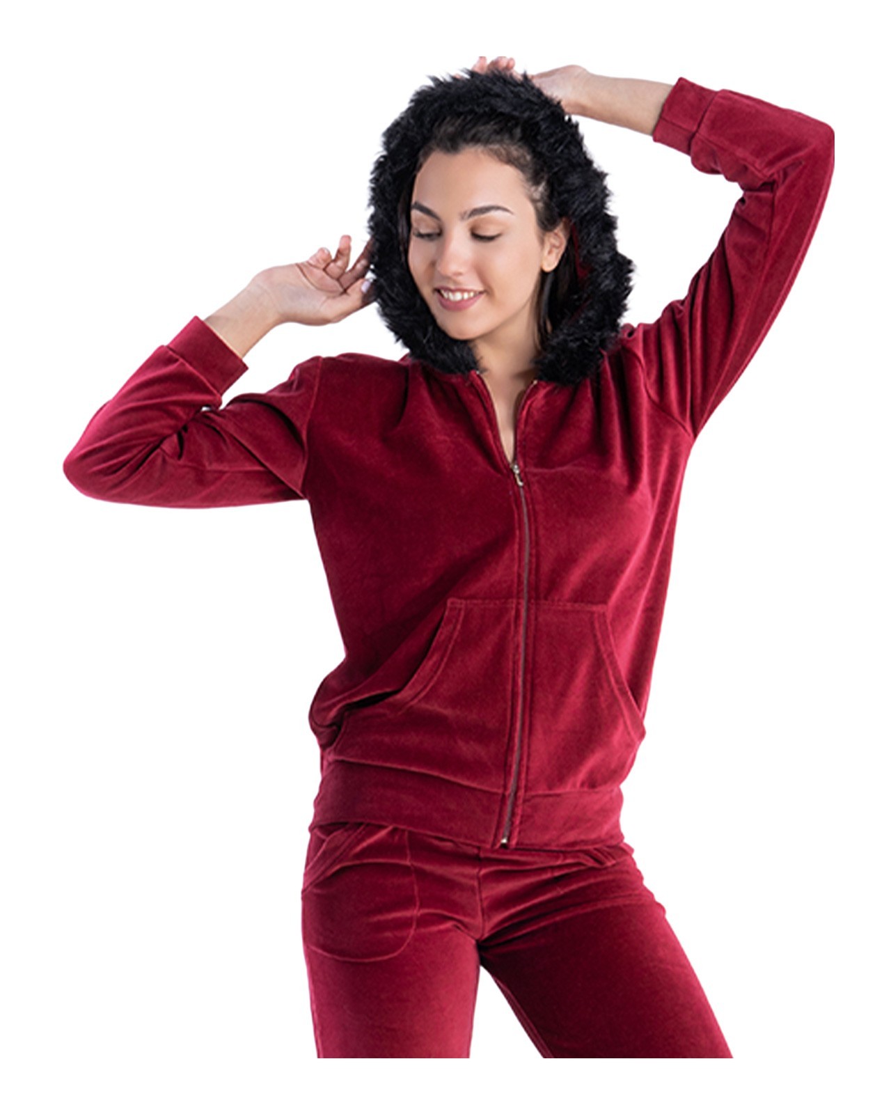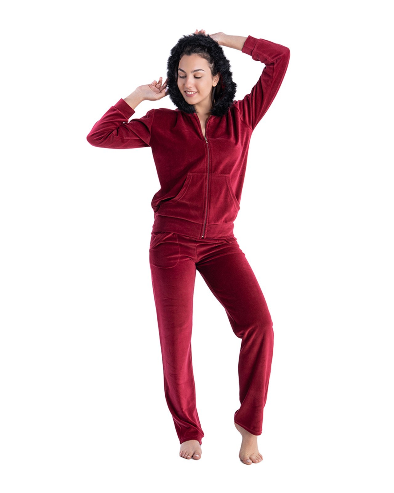 Rachel Γυναικεία Πυτζάμα-Φόρμα Βελουτέ Κουκούλα Γούνα