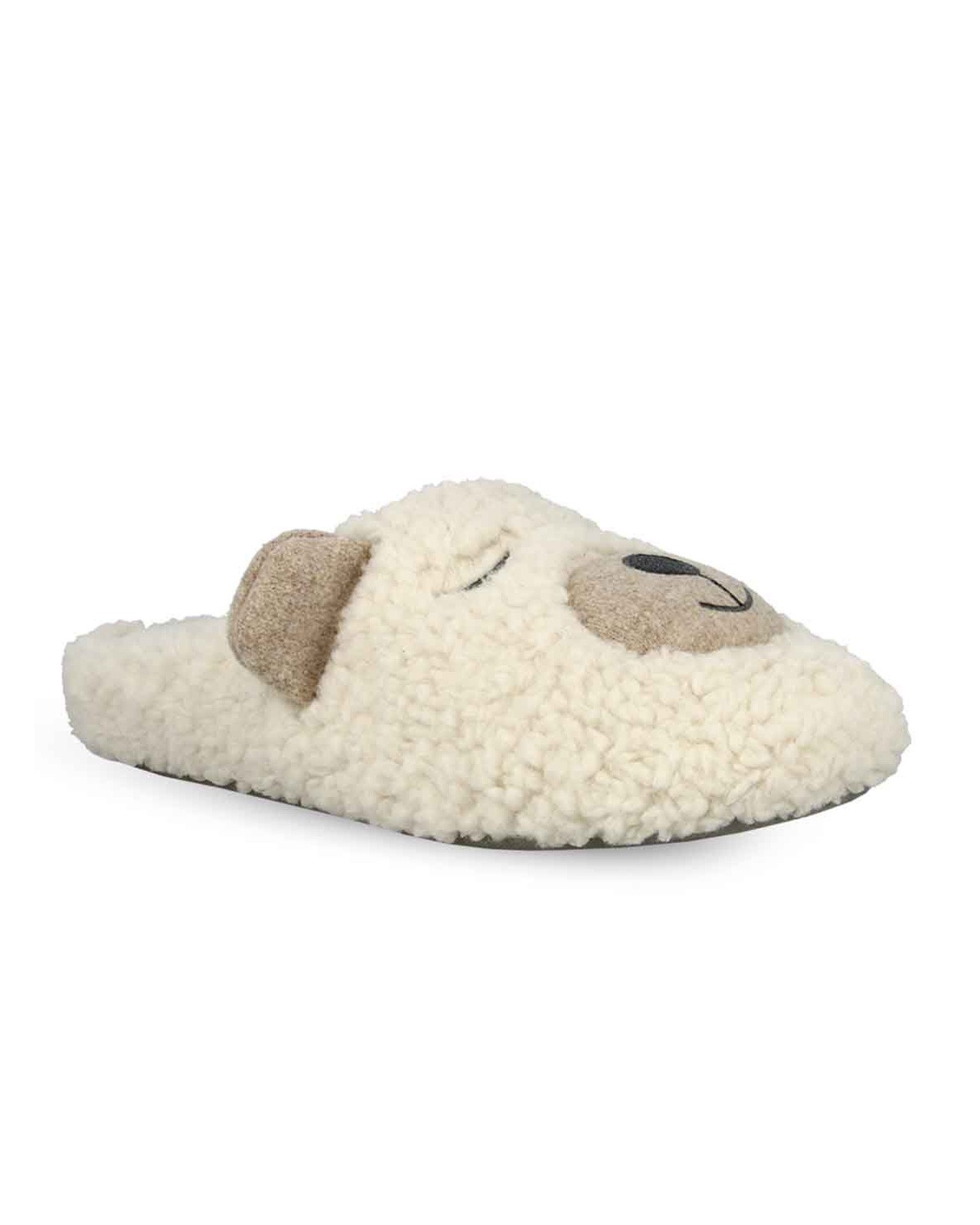 Γυναικείες παντόφλες Parex από μπουκλέ ύφασμα σε σχέδιο αρκουδάκι. Διαθέτει εύκαμπτη σόλα και αναπαυτικό πάτο και είναι ιδανική για καθημερινή χρήση μέσα στο σπίτι. Πλένονται εύκολα στο πλυντήριο στους 30°C.