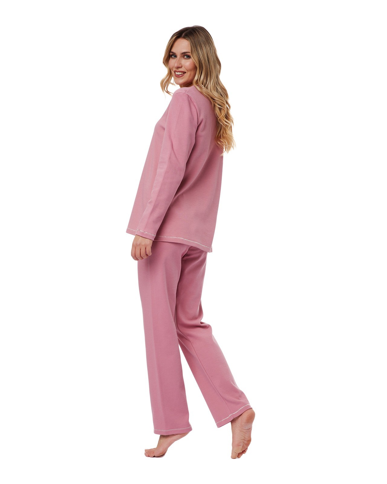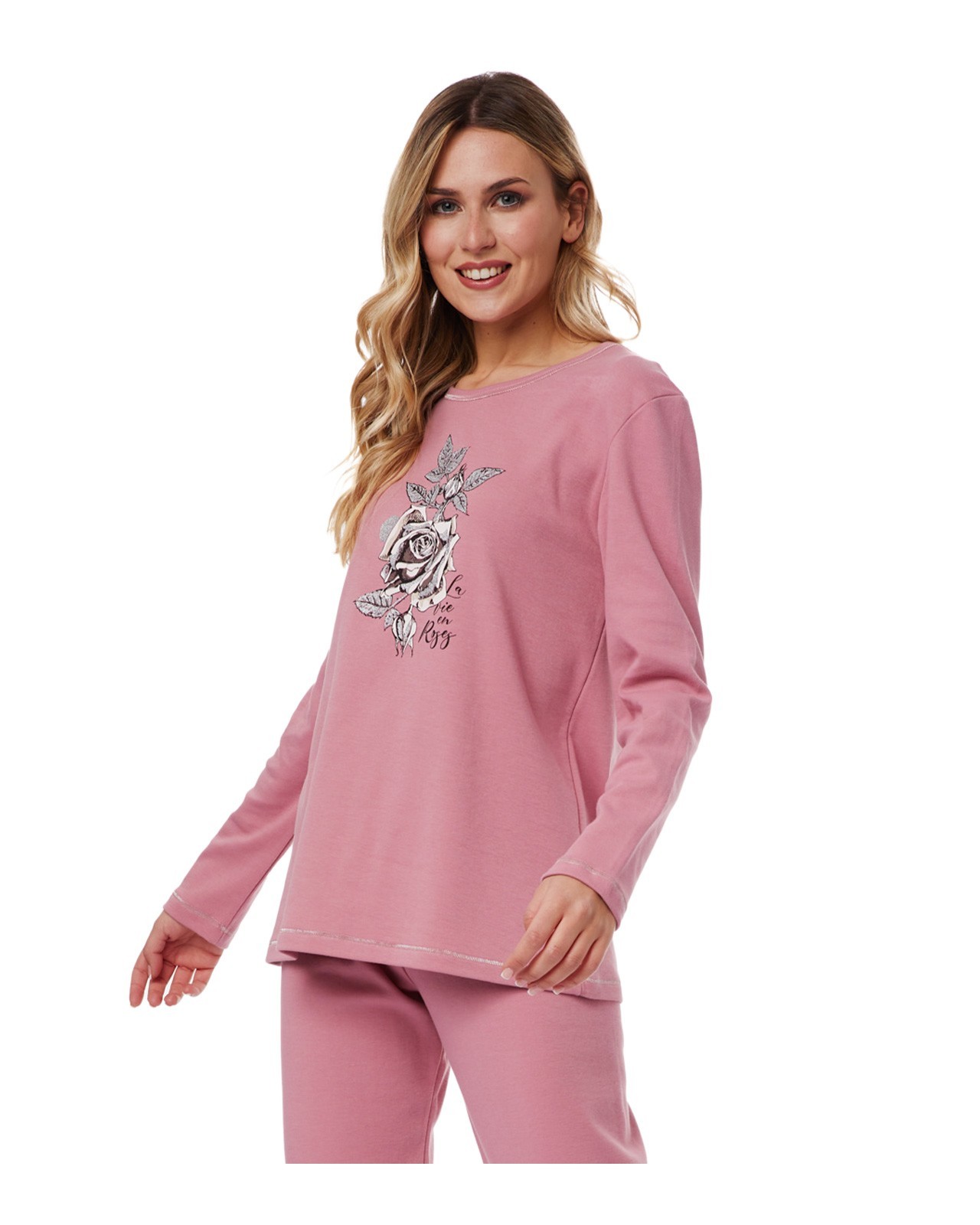 Minerva Women's Pyjama Fleece Stars Rose - Composition : 100% Cotton