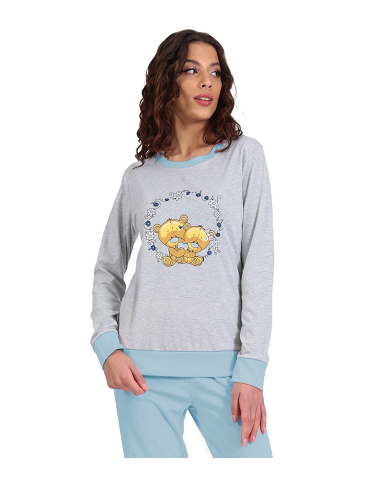 Lydia Creations Women's Pyjama Bear Love - Composition : 80% Cotton, 20% Polyester