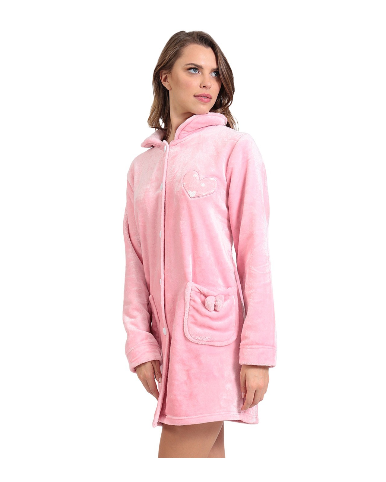 Lydia Creations Women's Robe Buttons Polka Heart - Composition : 80% Cotton, 20% Polyester