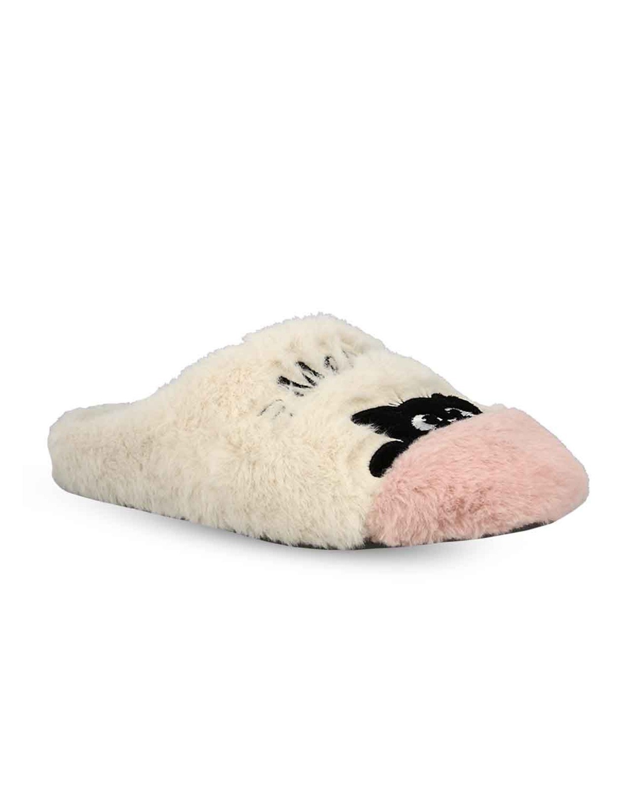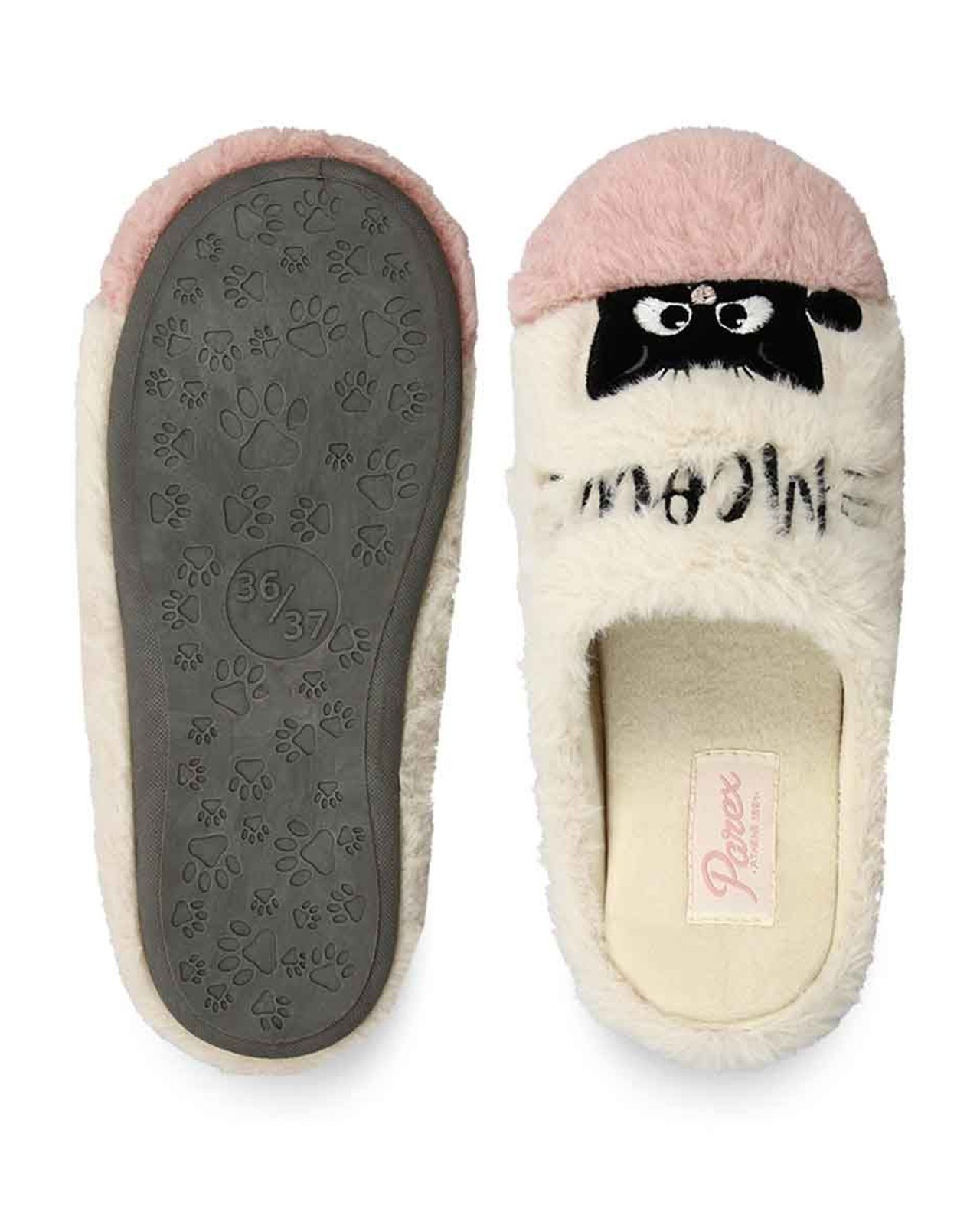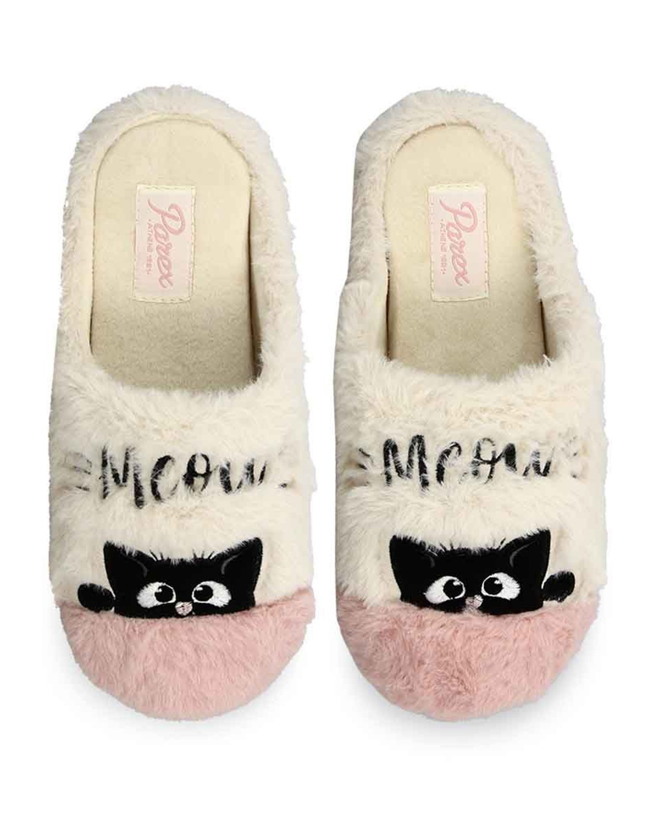 Ηouse slippers from fuzzy fabric. This design is featuring a soft insole, and a non-slip and comfortanle outsole. Cat embroidery on top.